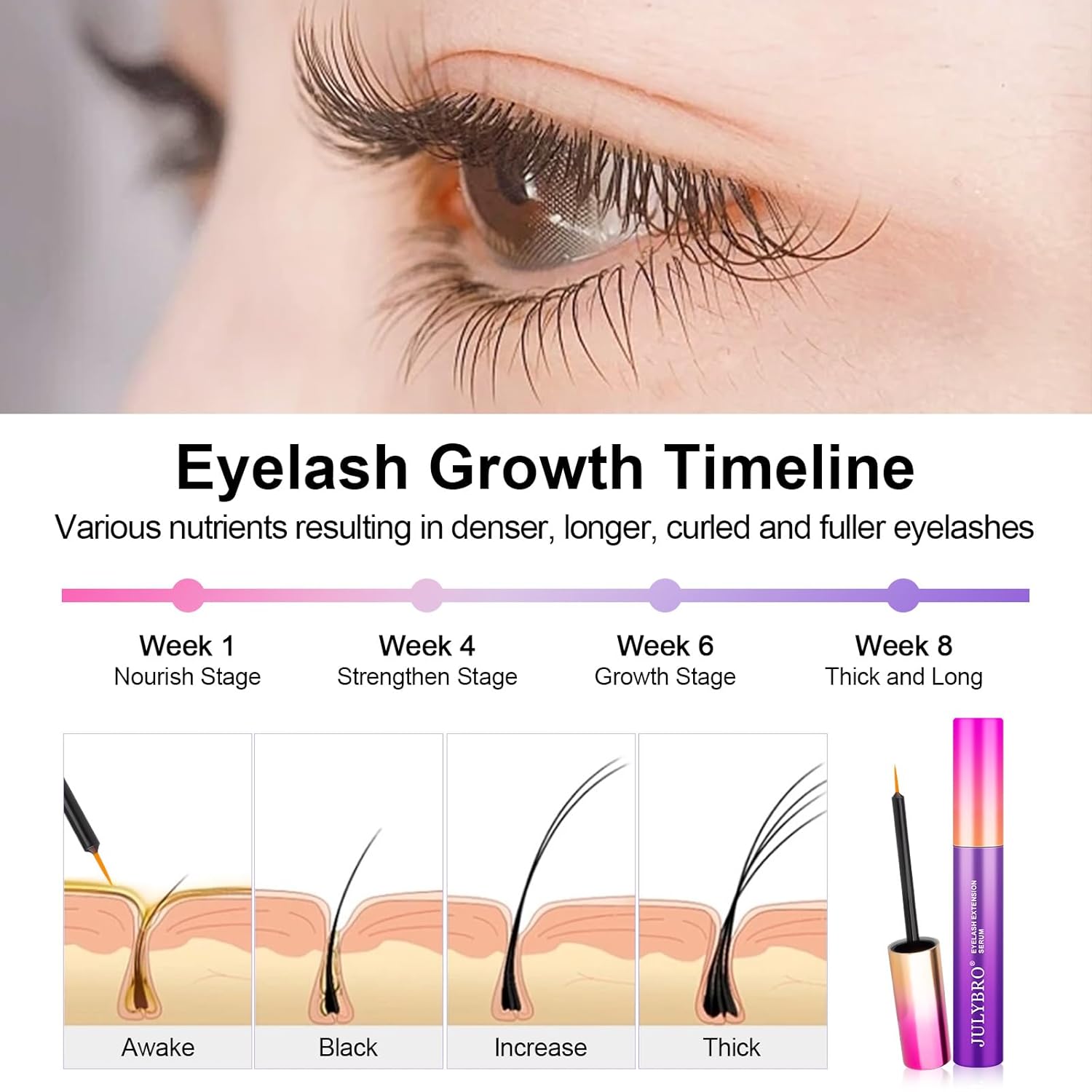 Eyelash Growth Serum(3ML), Eyelash Extension Serum with Natural Ingredients for Eyelash and Eyebrow,Eyelash Growth Serum to Grow Lashes Thicker, Healthier and Stronger
